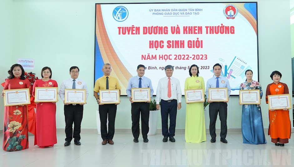 Dịp này, Phòng Giáo dục và Đào tạo quận Tân Bình trao tặng giấy khen cho 121 học sinh giỏi cấp quốc gia, thành phố; 45 giáo viên đạt thành tích xuất sắc trong công tác bồi dưỡng học sinh giỏi; trao giấy khen cho 9 tập thể có thành tích cao trong công tác bồi dưỡng học sinh giỏi năm học 2022-2023.